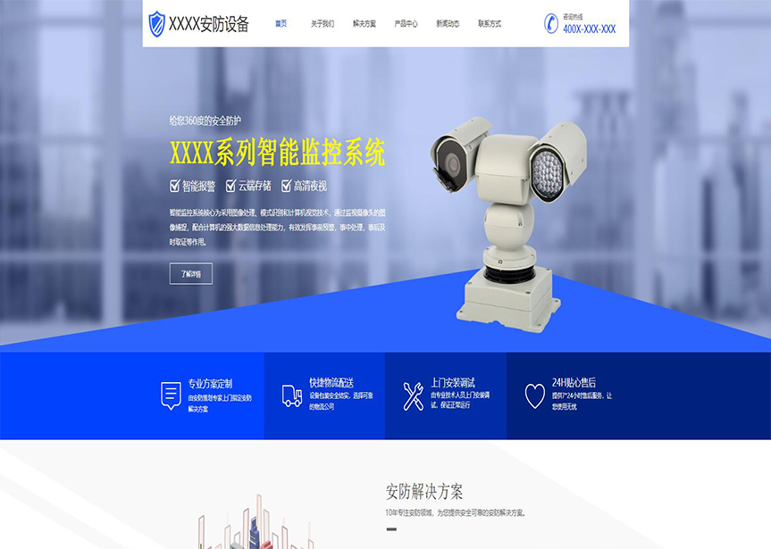 模板名稱:(帶手機版數據同步)自適應安防監控器材類通用網站模板