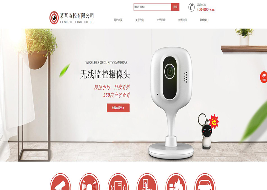 模板名称:(带手机版数据同步)自适应安防监控器材类红色网站模板