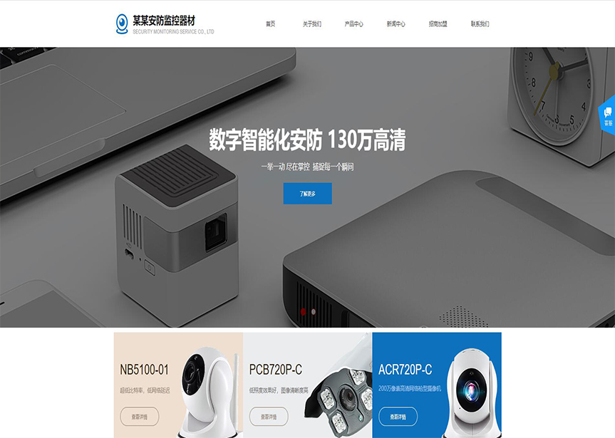 模板名稱:(帶手機(jī)版數(shù)據(jù)同步)自適應(yīng)安防監(jiān)控器材類藍(lán)色網(wǎng)站模板
