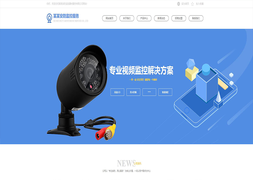 模板名稱:(帶手機(jī)版數(shù)據(jù)同步)自適應(yīng)安防監(jiān)控器材類藍(lán)色網(wǎng)站模板
