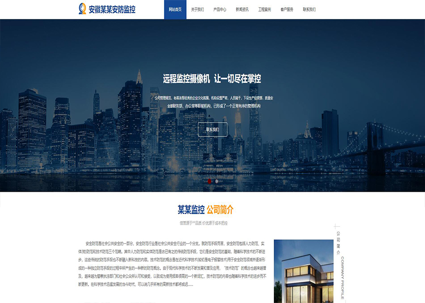 模板名称:(带手机版数据同步)自适应安防监控器材类蓝色网站模板